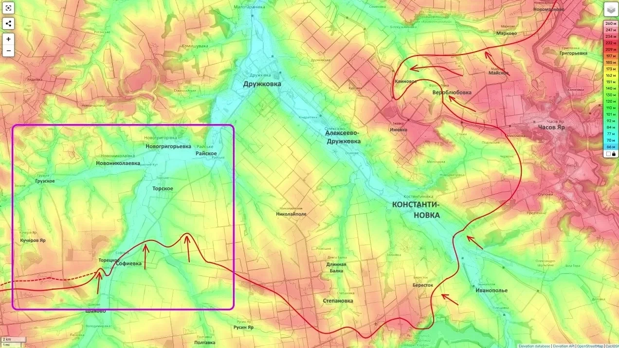 В районе Софиевки и Торецкого идут упорные встречные бои. ВСУ пытаются вернуть контроль над северной частью Софиевки и не допустить продвижения российских подразделений в Торецкое, однако пока без решающих результатов.