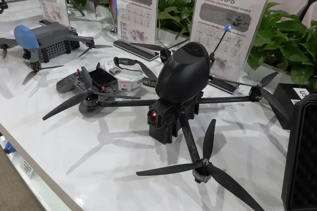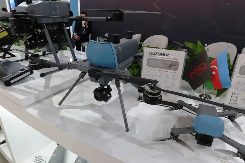 Большой интерес на азербайджанском стенде представляла линейка современных малых БПЛА разного назначения. В частности, впервые показали несколько новых барражирующих боеприпасов. Все они были разработаны самостоятельно с использованием ранее накопленного опыта и доступных компонентов.