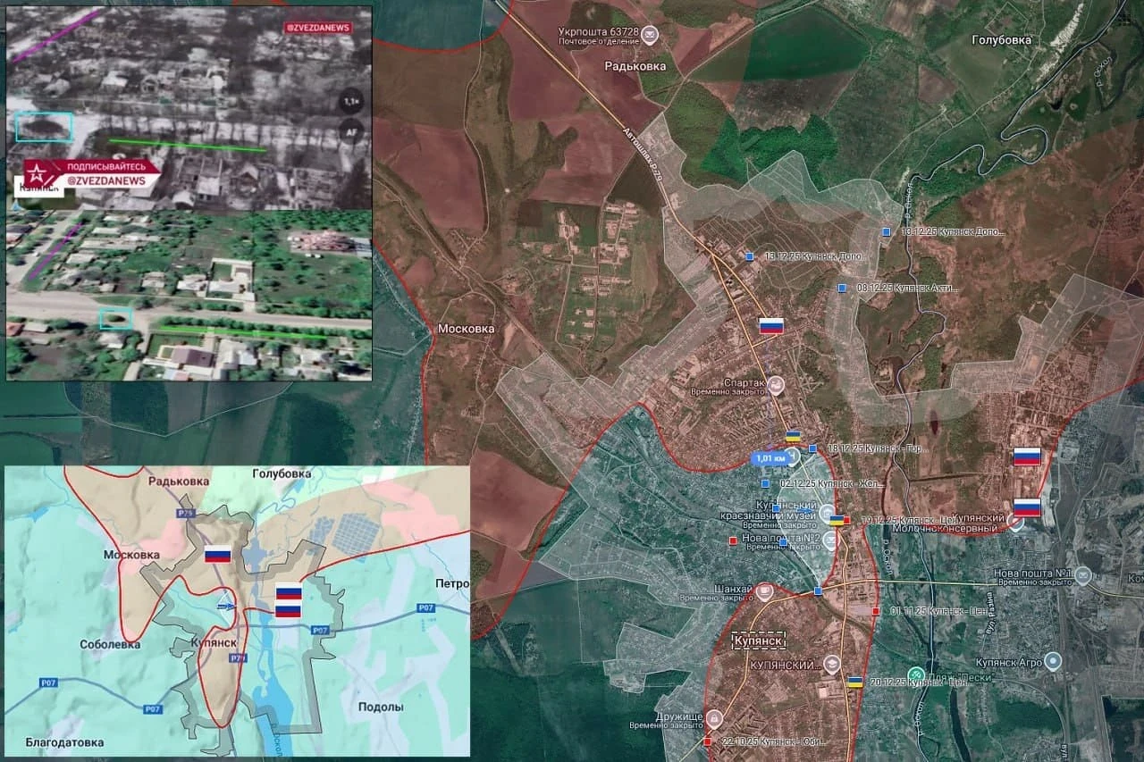 Минобороны РФ выложило кадры контроля армии России над Купянском и сообщило о продолжении боёв за город. С мест известно, что у ВСУ есть тактические успехи, они продолжают атаки в городской черте. Обстановка для наших военных в районе Купянска крайне тяжелая. Во всем районе российские подразделения идут ожесточенные бои, российские подразделения уничтожают вражескую тяжелую технику, пикапы, пункты управления БПЛА. Наши штурмовые группы стараются сдержать натиск превосходящих сил противника.