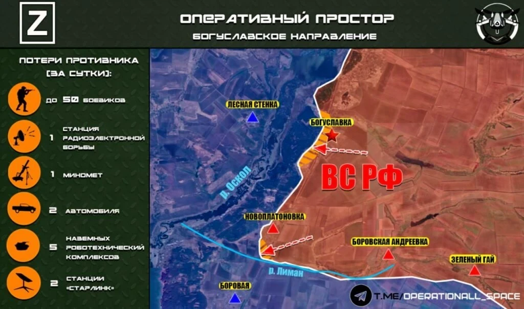 На Купянском направлении подразделения 6-й общевойсковой армии сорвали две атаки формирований 92-й отдельной штурмовой бригады ВСУ в районе Нечволодовки и Благодатовки. По данным Минобороны, целью этих атак был прорыв в сторону города Купянск.