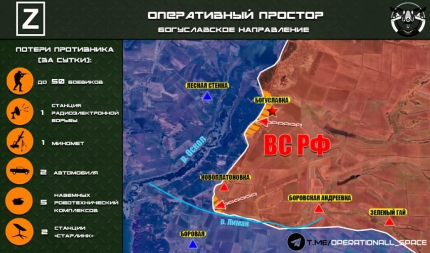 Подразделения российской группировки войск «Запад» ВС РФ на Купянском направлении в течение прошедших суток отразили две попытки наступления со стороны Вооружённых сил Украины. Согласно оперативной сводке Министерства обороны Российской Федерации, было ликвидировано до 15 военнослужащих противника, а также две единицы лёгкой автотехники.