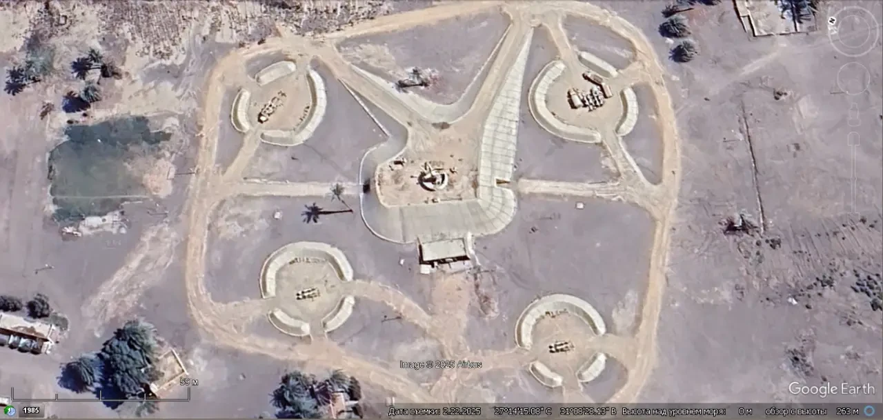 Спутниковый снимок Googlе Eаrth: позиция ЗРК С-125 в 5 км северо-восточней города Асьют. Снимок сделан в марте 2025 года