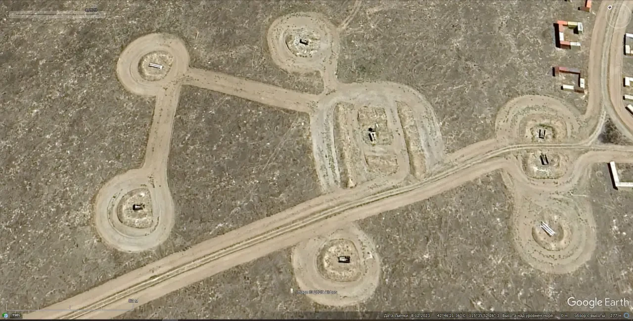 Спутниковый снимок Googlе Eаrth: макеты пусковых установок ЗРК С-125 на полигоне Спейдадам