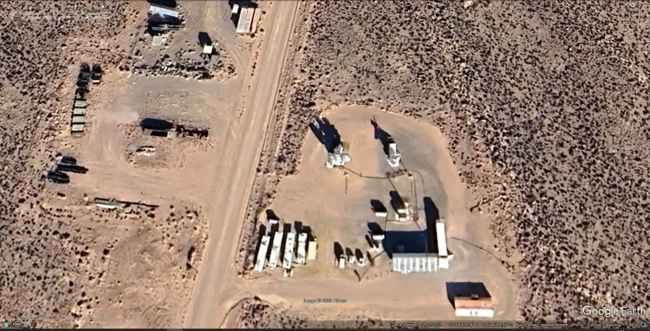Спутниковый снимок Googlе Eаrth: позиция ЗРК С-125М1А на западной окраине порта Намибе. Зенитных ракет на пусковых установках нет. Снимок сделан в марте 2025 года