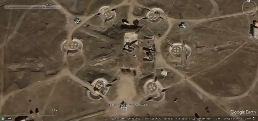 Спутниковый снимок Googlе Eаrth: позиция ЗРК С-125 в 12 км северо-западней Каира. Видно, что на позиции осталось две пусковых установки без ракет. Снимок сделан в апреле 2025 года