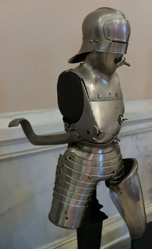 Турнирный доспех 1468-1532 гг. сразу с двумя копейными крюками – передним и задним. Оружейная палата дворца Новый Ховбург, Вена. Фотография автора