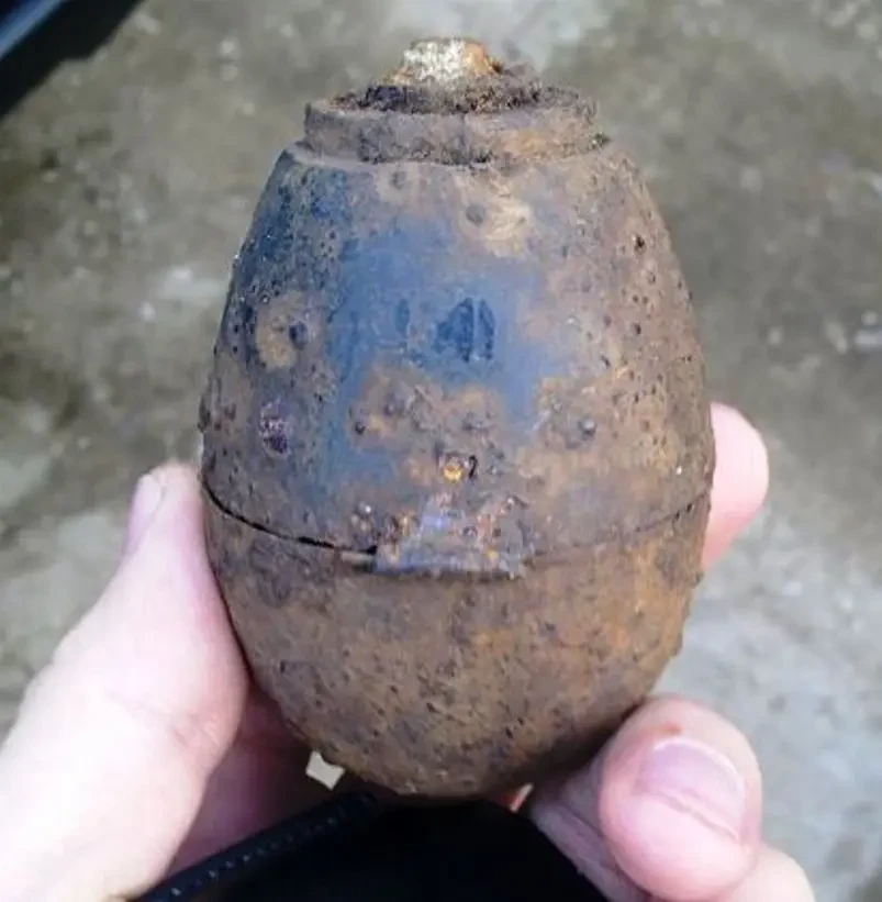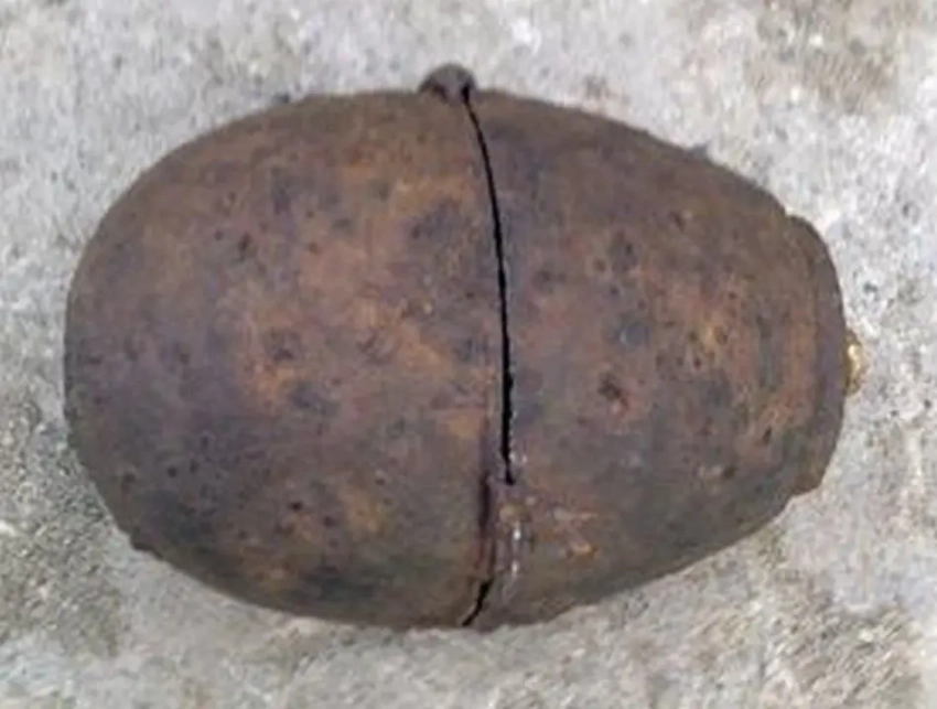 50-мм самодельная агитационная мина, найденная поисковыми отрядами в раскопе