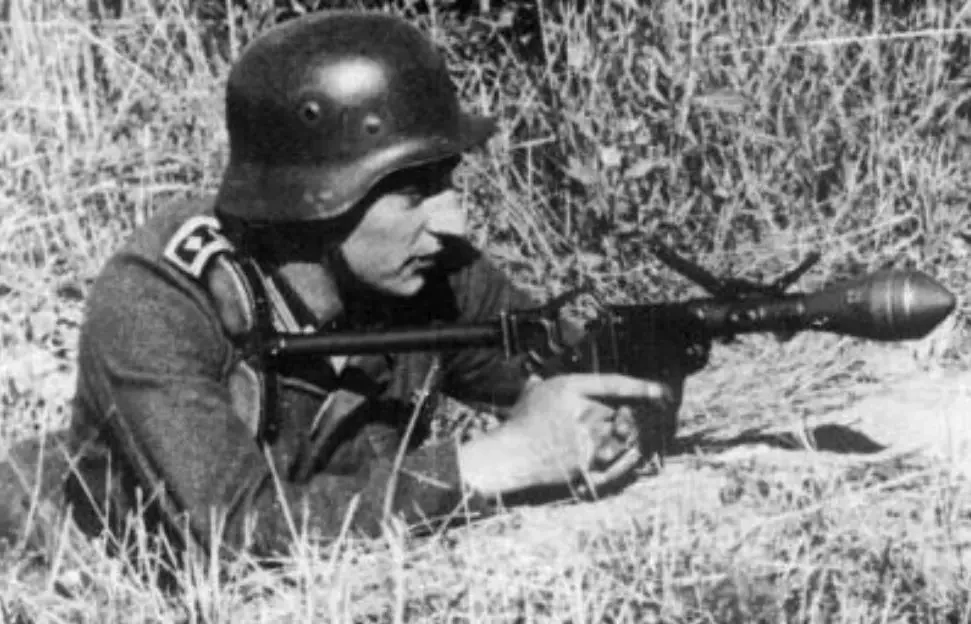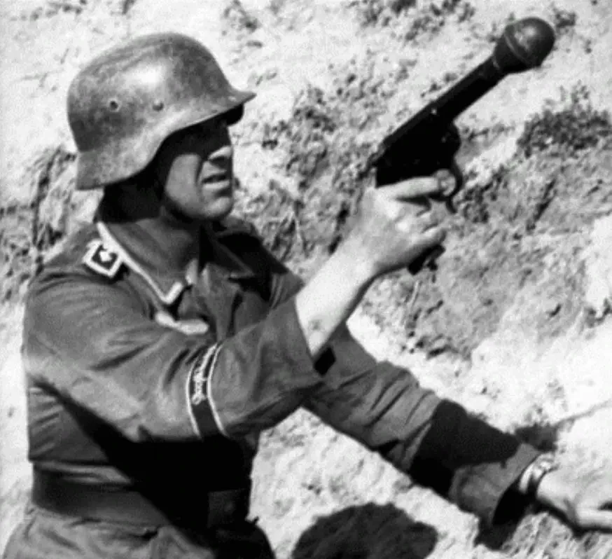 Немецкий солдат стреляет пистолетной гранатой