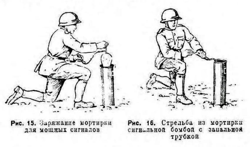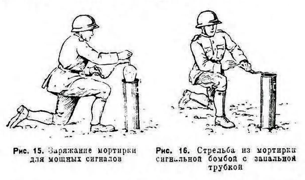 Перед выстрелом картонная мортира устанавливалась так, чтобы вся поверхность ее донца упиралась в грунт. Затем внутрь закладывалась бомба конусом вниз (в деревянном донце мортиры для конуса вышибного заряда было сделано специальное углубление). Затем стрелок воспламенял замедлитель (время замедления – 10 сек) и убегал в укрытие.