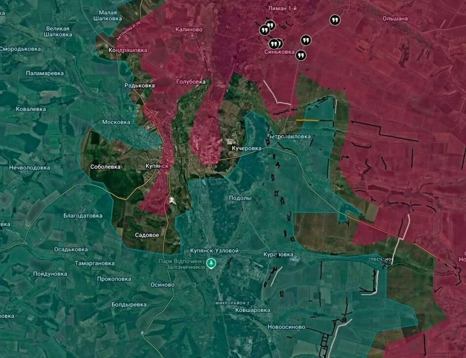 Из Купянска приходит противоречивая информация. Командование ВСУ заявляет, что зачистка города завершена, осталось 100 российских солдат, скрывающихся в подвалах в центральной и северо-западной частях. При этом ВСУ обстреливают городскую больницу, которую удерживают наши бойцы. Российские источники утверждают, что наши подразделения уничтожают врага в городе. Известно, что ВСУ кратно нарастили воздушную разведку, чтобы вычислить российские пункты управления БПЛА и позиции артиллерии. На западе от города ВСУ возводят инженерные сооружения и оборонительные узлы.