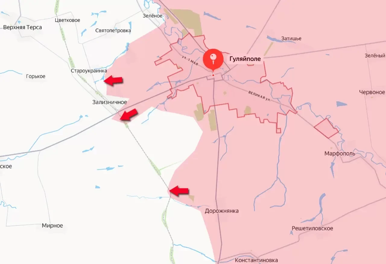 Продвижение на ряде участков под Гуляйполем позволяет отбросить остатки подразделений ВСУ, покинувшие город, дальше от его окраин. Кроме того, это не позволяет приблизиться к городу резервам Сырского, которых всё ещё продолжает хватать на локальные операции.