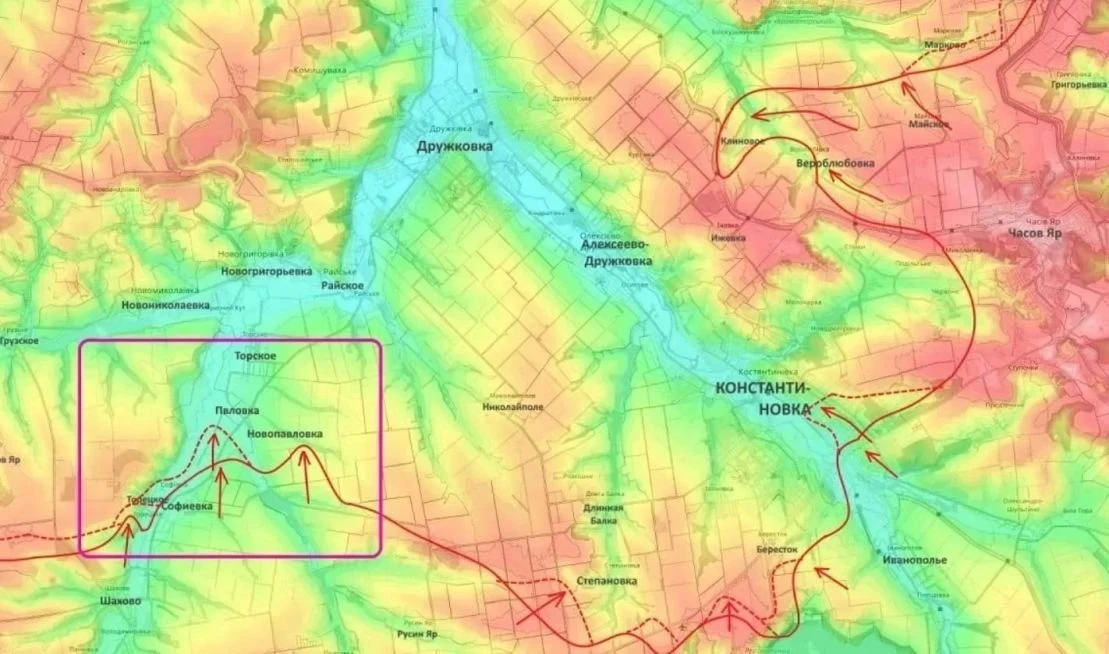 Одновременно с этим ожесточённые бои идут на северном фланге Константиновки. Российская армия давит противника в окрестностях населённых пунктов Веролюбовка и Марково, создавая угрозу охвата города с двух сторон.
