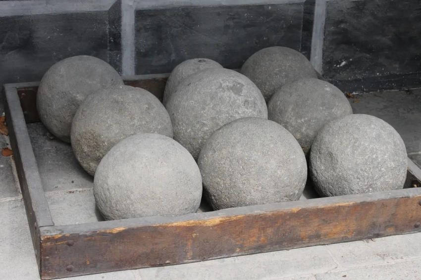Ядра к бомбардам в то время еще не отливали, а вытесывали их из камня. Двор замка Чешски-Крумлов. Фотография автора
