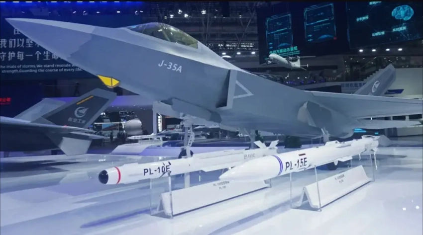 PL-15E и PL-10E на фоне истребителя J-35A на авиасалоне в Чжухае, 2024 год