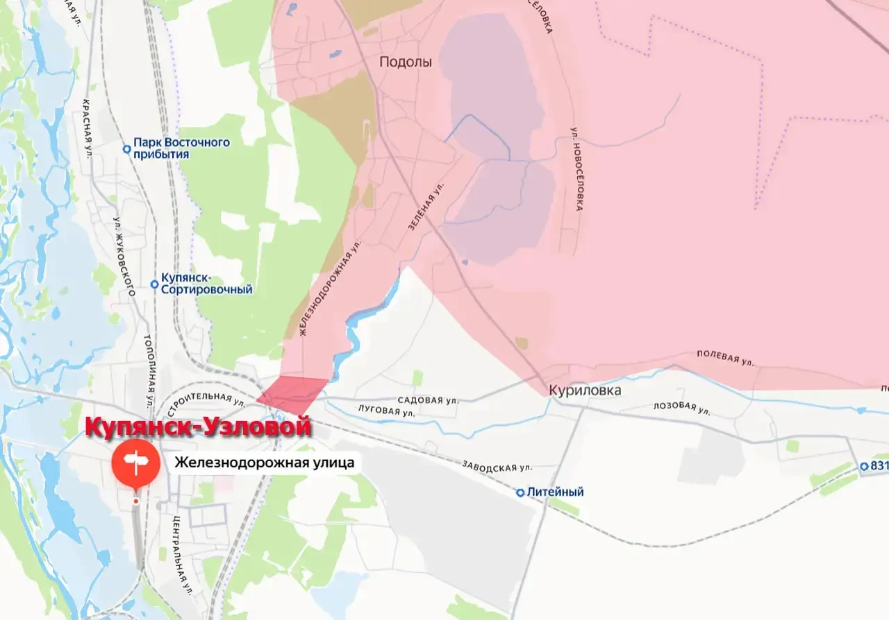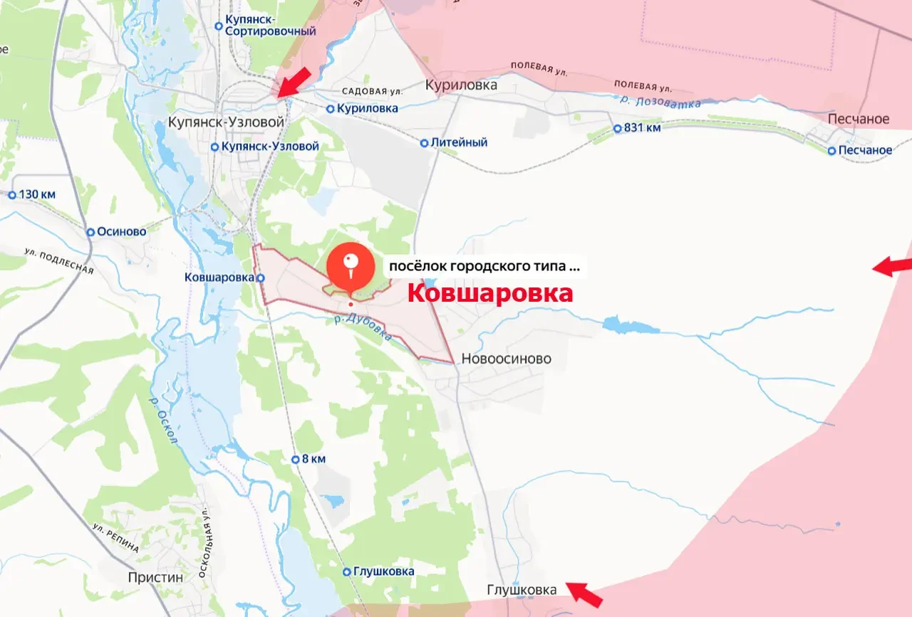 На текущий момент противник потерял контроль над стыком железнодорожных веток в районе переулка Лозовского в Купянске-Узловой. Дальнейшее продвижение ВС РФ способно привести к окружению группировки ВСУ в районе Ковшаровки, что южнее Купянска-Узлового – на левом берегу Оскола.