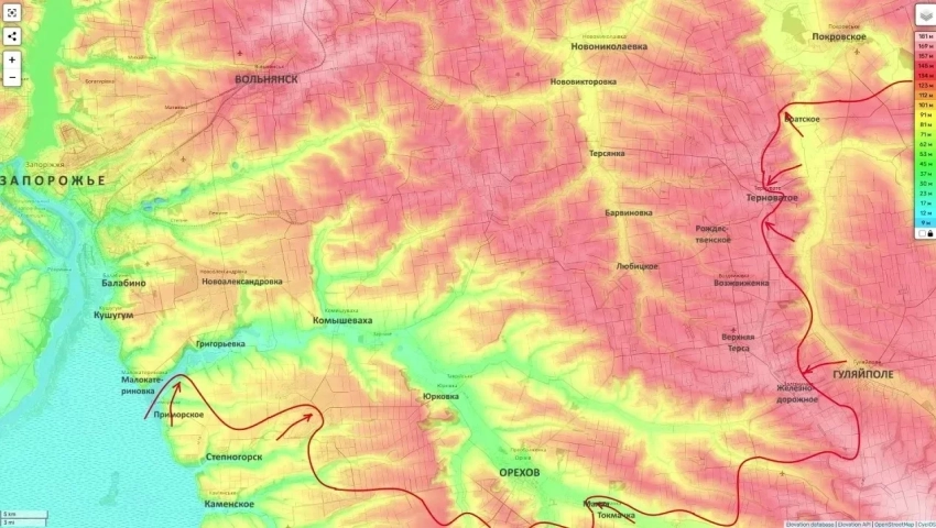Параллельно группировка «Восток» развивает успех у Гуляйполя. Наши бойцы выравнивают фронт по линии Железнодорожное - Староукраинка - Цветковое. Идут бои за водораздельные высоты, контроль над которыми позволит зайти в тыл всей Ореховской группировке врага. В населенном пункте Терноватое половина территории уже под контролем ВС РФ.