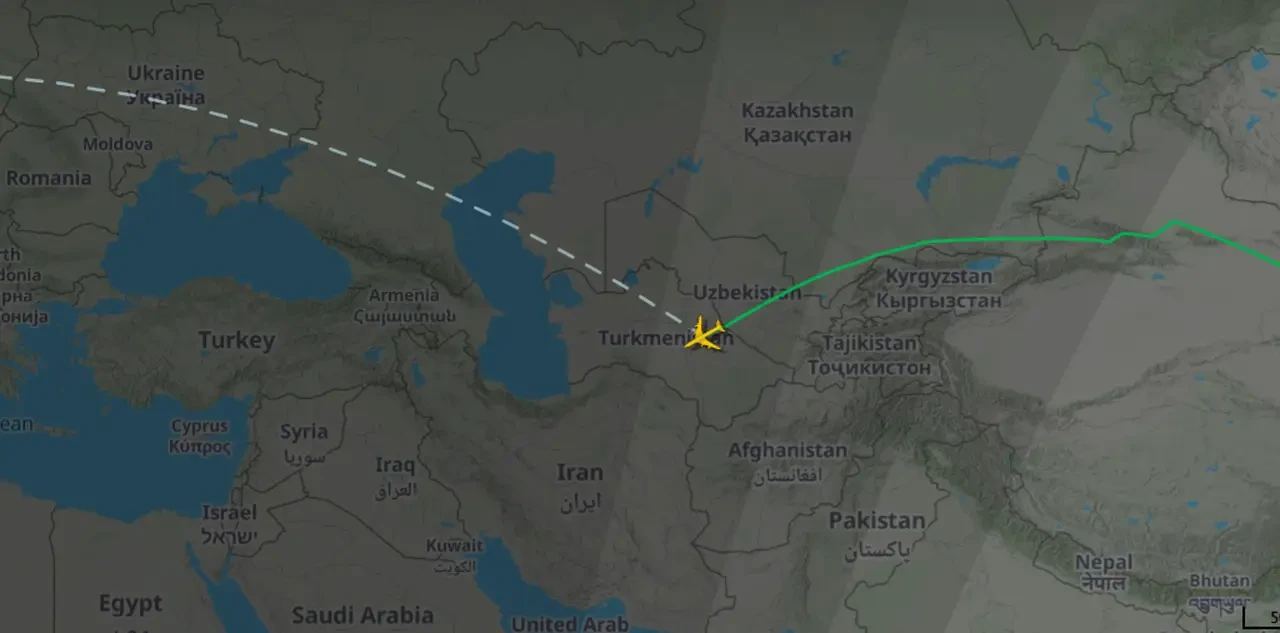 Однако затем появилась пометка «борт не обслуживается», а на карте последней отметкой фиксации борта был упомянутый Туркменистан.