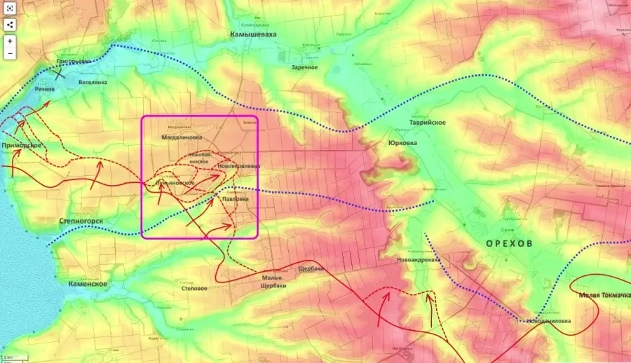 Как пишет Telegram-канал "Военкоры Русской Весны", противник уже фиксирует потери своих операторов БПЛА в районе Магдалиновки. Также отмечено продвижение российских сил между Приморским и Ореховом, в районе Павловки.