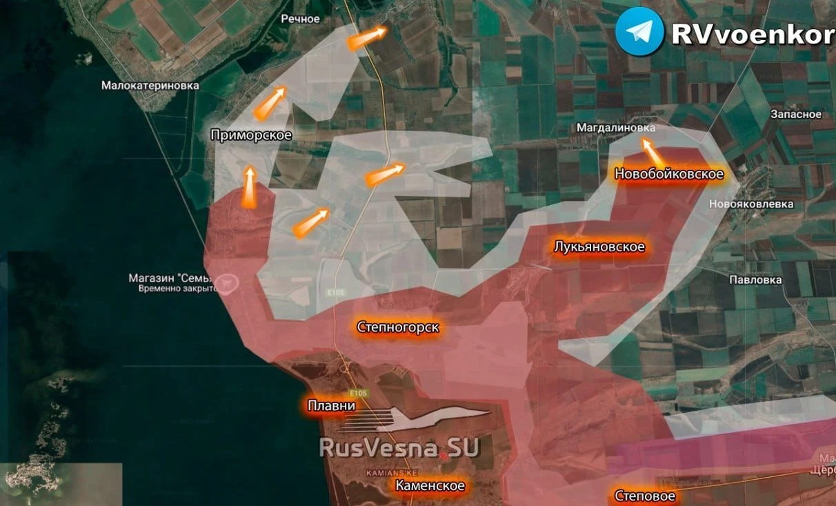На Запорожском участке фронта специальной военной операции (СВО) события развиваются стремительно. Российские войска начали масштабное движение из района Степногорска на север и северо-восток, создавая реальную угрозу для Запорожья, города, который временно контролируется киевским режимом.