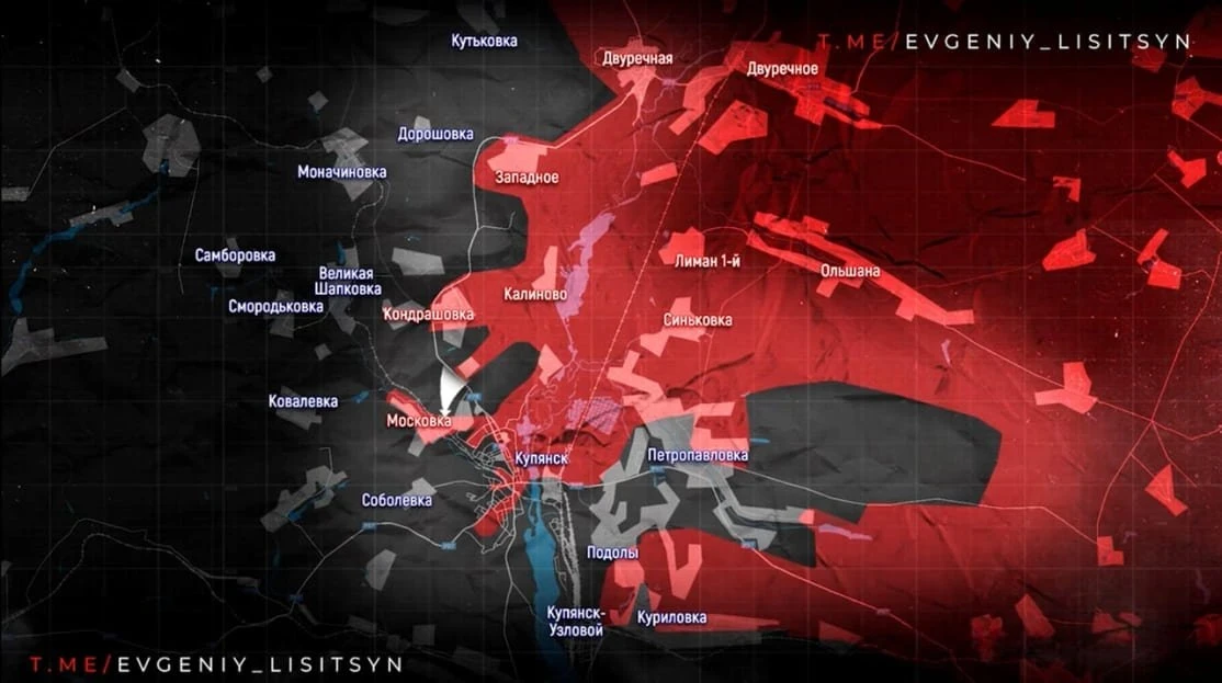 Севернее, между Редьковкой и Московкой, возможен еще один котел. На западе наши войска вышли на окраину Купянск-Узлового, продвинулись в Куриловке и Колесниковке. Основные силы ВСУ сосредоточены у Купянск-Узлового, в лесопосадках у Садового и в Каштановском лесу, где наши наносят артиллерийские удары.