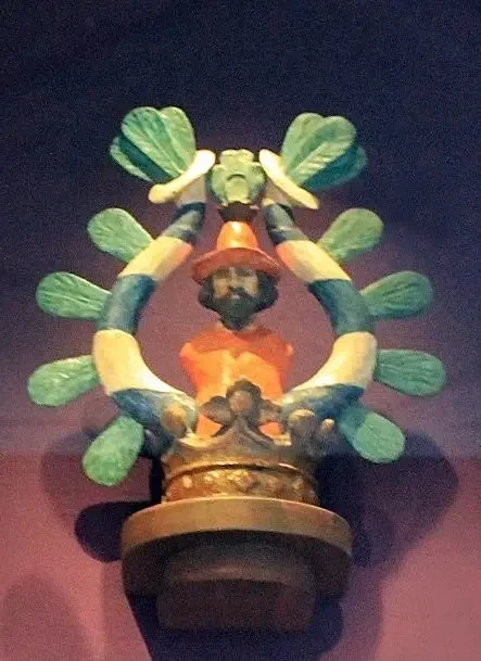 Нашлемное украшение для турнирного доспеха с рогами с раструбом и фигурой человека между ними. XVI в. Дрезденская оружейная палата. Фотография автора