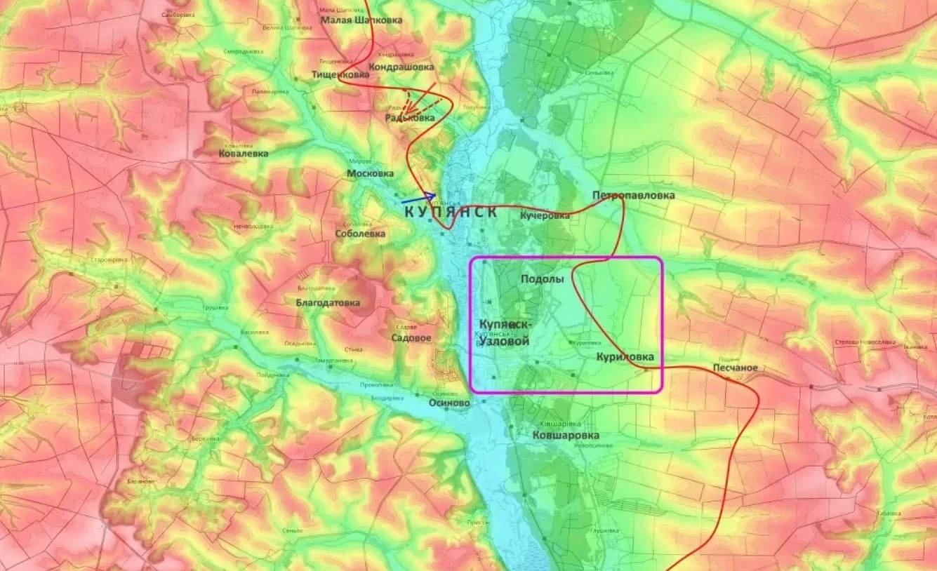 В районе Райгородка и на направлении Подолы - Купянск-Узловой продолжаются тяжёлые бои, где российские части планомерно восстанавливают контроль над западным берегом реки Оскол.