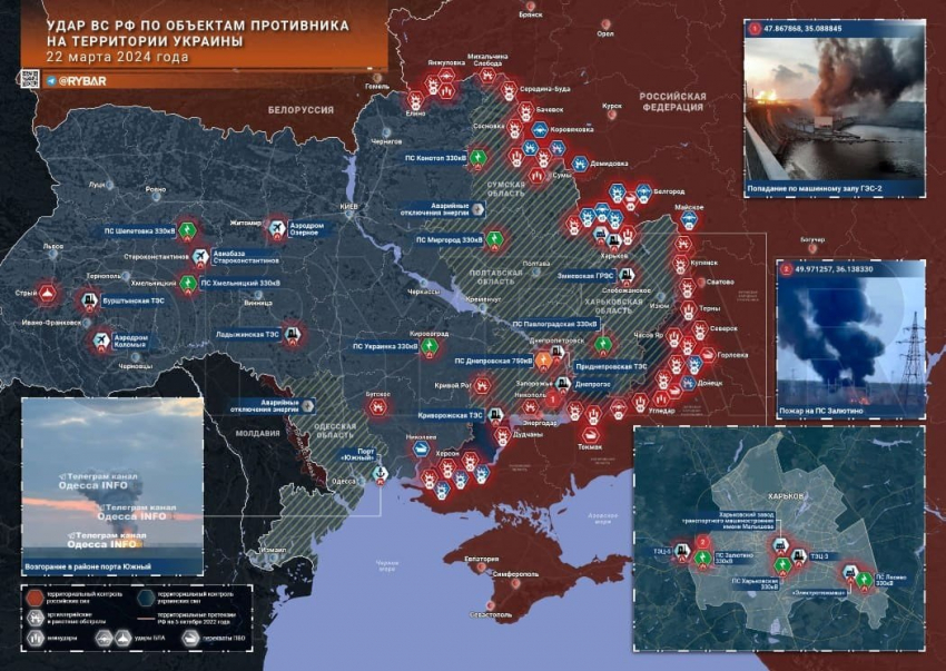 Ранее в Минобороны России сообщили, что Вооружённые силы Российской Федерации с 16 по 22 марта нанесли массированный удар высокоточным воздушным, морским, наземным оружием и беспилотными средствами по объектам энергетики, военно-промышленного комплекса, железнодорожным узлам, арсеналам, местам дислокации ВСУ и иностранных наемников.