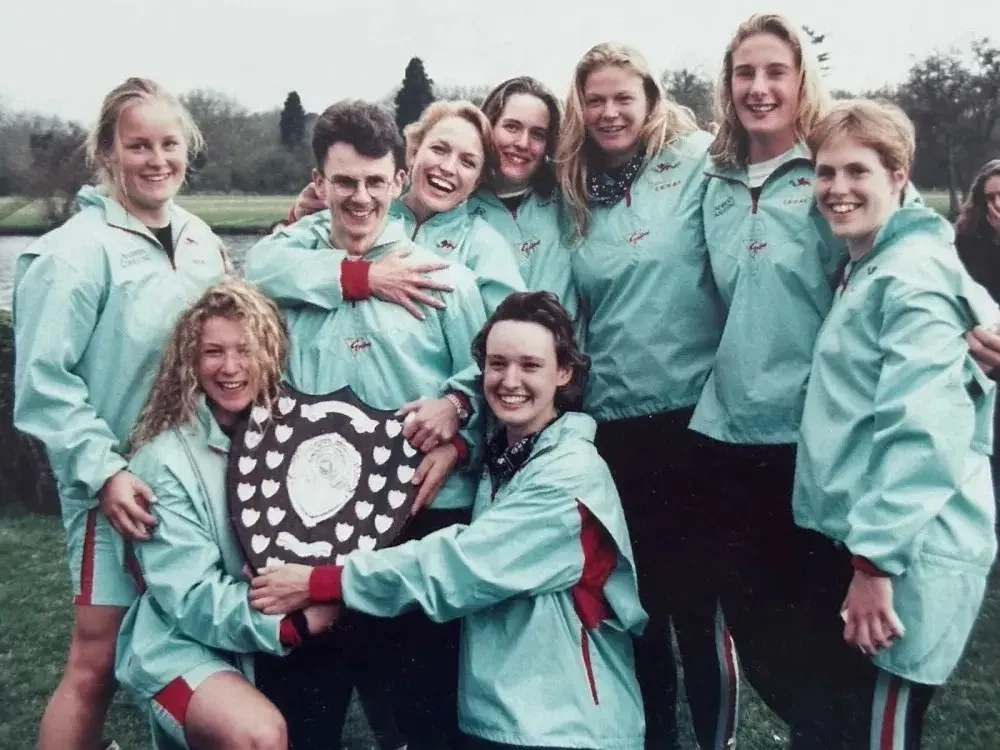 Блейз Метревели (вверху слева) в студенческие годы в Кембридже занималась греблей. Фотография сделана в 1997 г.