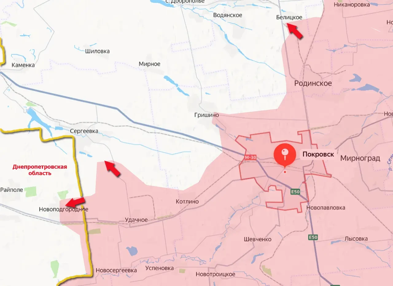 Помимо этого на том же указанного направлении российские войска освободили от сил противника порядка 20 квадратных километров территории к западу и северу от Родинского. Сообщается о боях в черте соседнего города – Белицкое, где ранее противник контратаковал. Освобождение Белицкого позволит двигаться на северо-запад – к городу Доброполье. Это один из двух (с Белозёрским) самых западных городов ДНР.