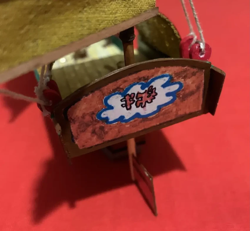 Тент над задней частью палубы может быть из бумаги, но более интересно сделать его из самой обыкновенной… марли, покрасив ее желтым акрилом