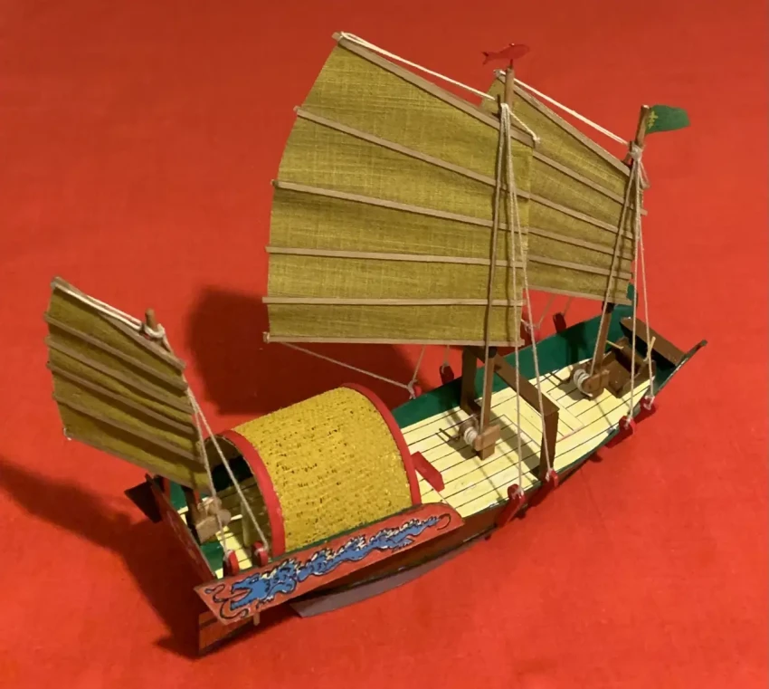 Очень простая модель китайской джонки, практически полностью сделанная из бумаги. Фотография автора