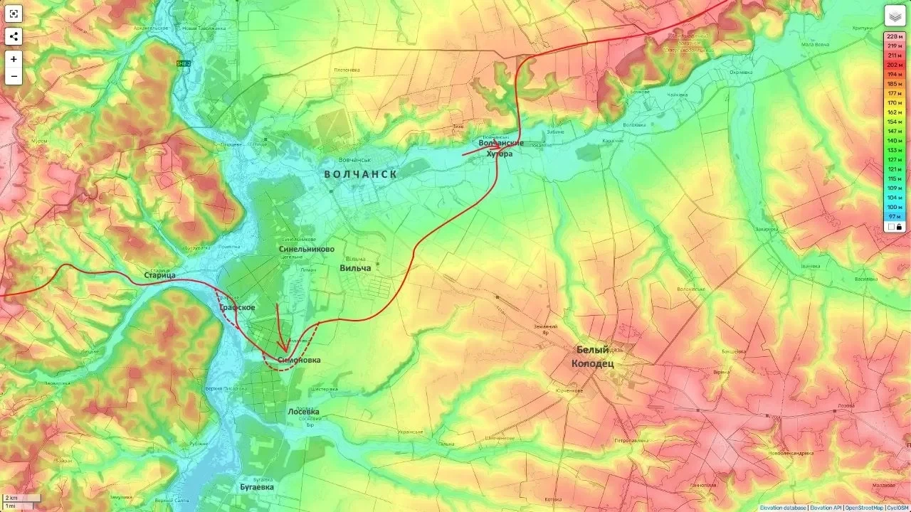 Одновременно с этим идет интенсивная зачистка правого берега реки Волчанка в районе Волчанских Хуторов. Успех здесь позволит высвободить значительные резервы группировки «Север» для дальнейшего рывка на южное направление.