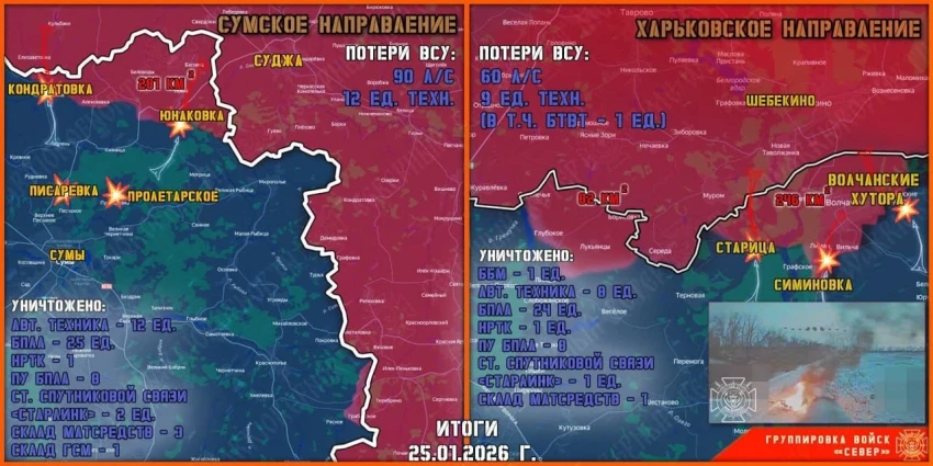 В приграничных районах плацдарм расширен на 600 метров. Группировка «Север» продолжает теснить противника в Глуховском и Сумском районах, заставляя командование ВСУ перебрасывать резервы.