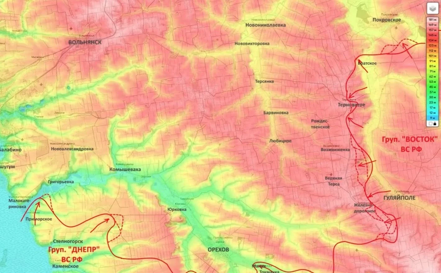 Но для противника сложность состоит и в том, что армия России может двинуться севернее - туда, где узкие участки реки Конка. Это может позволить выйти на её северный берег, что поспособствует прямому выходу уже к южным окраинам областного центра - Запорожья. Командование ВСУ в связи с таким развитием событий вынуждено задействовать силы на разных участках этого фронта, не рискуя бросить все резервы на какой-либо один.