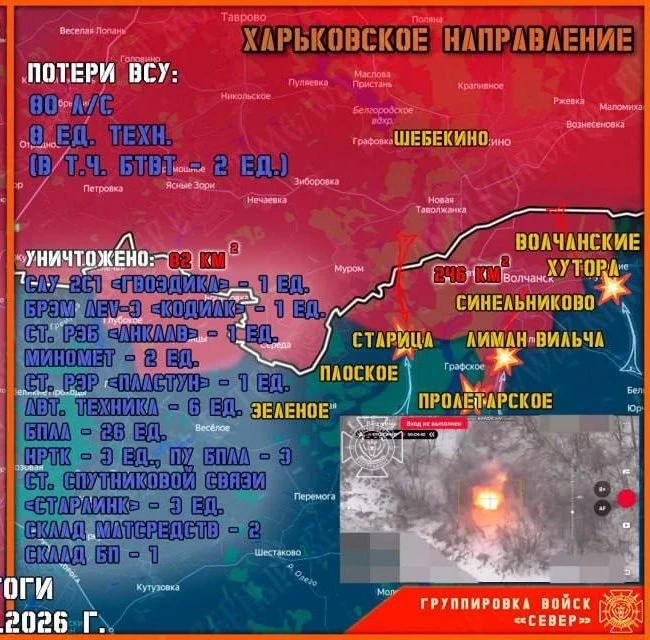 Также есть успехи в районе Круглого и Песчаного. Нельзя не отметить и тяжёлые бои за Волчанские Хутора, где обстановка накаляется из-за погодных условий и нагромождения дронов у обоих сторон, что может усложнять логистику.