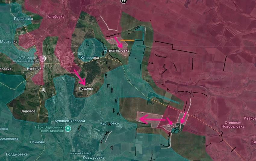 По данным источников с мест, ожесточенные встречные бои продолжаются в районе Подолов, Куриловки и Песчаного. Объективных свидетельств присутствия российских регулярных частей в самом Купянске-Узловом или на его непосредственных подступах на данный момент в открытом доступе нет. Вероятно, речь идет о динамичной ситуации, требующей уточнения в ближайшие сутки.