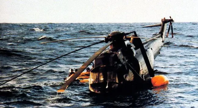 Совершивший аварийную посадку «Си Кинг» — первый из подбитых отрядом первого лейтенанта Эстебана вертолётов