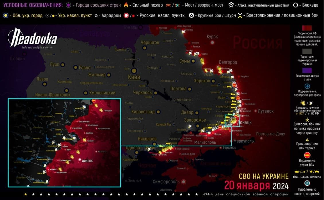 Карта боевых действий в зоне СВО на Украине по состоянию на сегодня, 21.01.2024