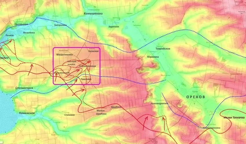 В свою очередь группировка войск «Днепр» после нескольких недель ожесточенных боев полностью освободила населенный пункт Новояковлевка. Это событие стало триггером для обрушения устойчивости украинской обороны в данном секторе. Подоляка отмечает важность контроля над дугой населенных пунктов: Павловка, Лукьяновское, Магдалиновка, Новобойковское и Запасное.