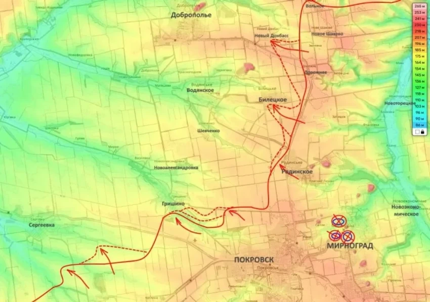 После перегруппировки активизировались бои в районе Покровск - Мирноград. Российская артиллерия и штурмовые подразделения вновь наращивают давление.