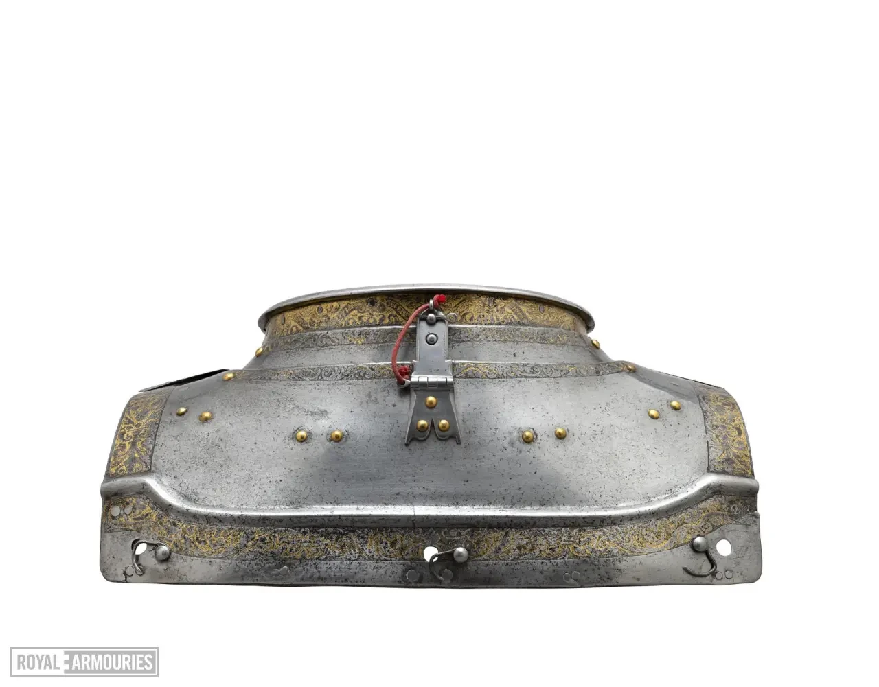 Нагрудная пластина со слегка выступающим центральным гребнем имеет подвижные вставки; имеются три штифта или скобы для крепления отсутствующей усиливающей нагрудной пластины, а в центре — отверстие для болта, который, помимо удержания усиливающей нагрудной пластины, также служил для крепления еще и внутренней набрюшной пластины. Аналогичное отверстие имеется в спинной пластине для задней пластины. Размер спинной пластины был увеличен за счет пластин, приклепанных с обеих сторон. Нагрудник и спинная пластина скрепляются между собой на шарнирах и плечевыми ремнями типичной гринвичской конструкции. Кираса шарнирно соединена на талии, и к этой пластине на груди прикреплены набедренник из трех пластин и длинные набедренники из шести пластин, все пластины перекрывают друг друга подобно черепице. К спинной пластине прикреплена набедренная пластина из трех пластин (четвертая, верхняя пластина отсутствует) при помощи штифтов.