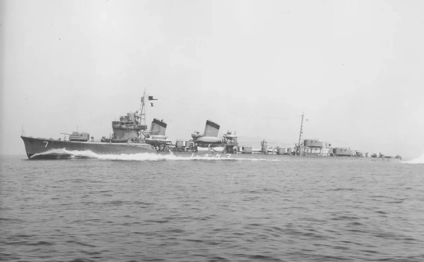 Из 10 построенных эсминцев в интервале 1942-45 погибло 9, в этой серии «Ушио» смог дожить до конца войны. Правда, его состояние нельзя было назвать боеспособным.