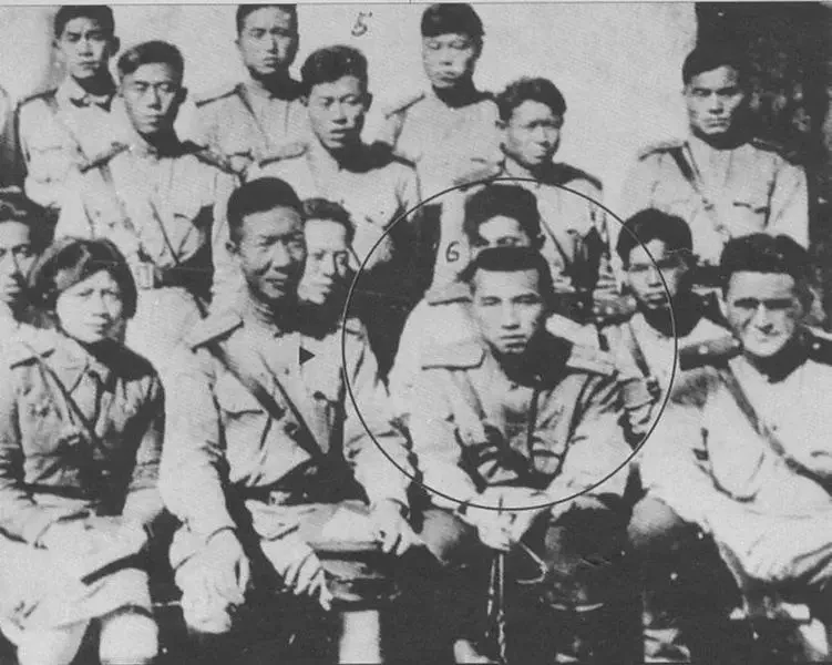 Ким Ир Сен (в заднем ряду в центре) со своими партизанами