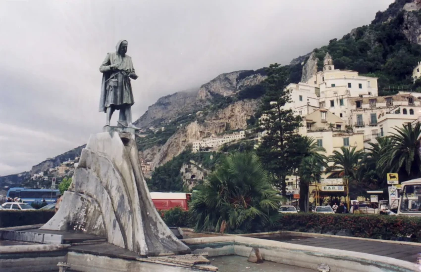 Оказывается, Флавио Джойя сначала не был моряком, а был… ювелиром. Дальше, как водится, он полюбил красавицу Анджелу, которая была дочерью богатого рыбака Доменико. Но тот не хотел, чтобы дочь выходила замуж за «сухопутного», и поставил Флавио условие: научиться плавать в море по прямой линии и в тумане, и в ночи. То есть по тому времени заведомо невыполнимое требование. Но оказалось, что Флавио, когда инкрустировал изделия маленькими кусочками железа, использовал магнитный железняк. А еще он додумался положить кусочек этого камня на пробку, плавающую в воде, и увидел, что тот всегда поворачивается одной стороной. Вот так Флавио и изобрел компас, а ровно через месяц женился на прекрасной Анджеле.