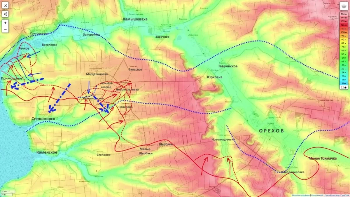 По оценке эксперта, обострение связано с продвижением российских группировок «Восток» и «Днепр». После потери ВСУ основной линии обороны и выхода российских подразделений через Степногорск на север - в сторону Приморского, Новояковлевки и Павловки - возникла угроза дальнейшего продвижения к Камышевахе и переправам через реку Конка. До окраин Запорожья от этих рубежей остается чуть более десяти километров.