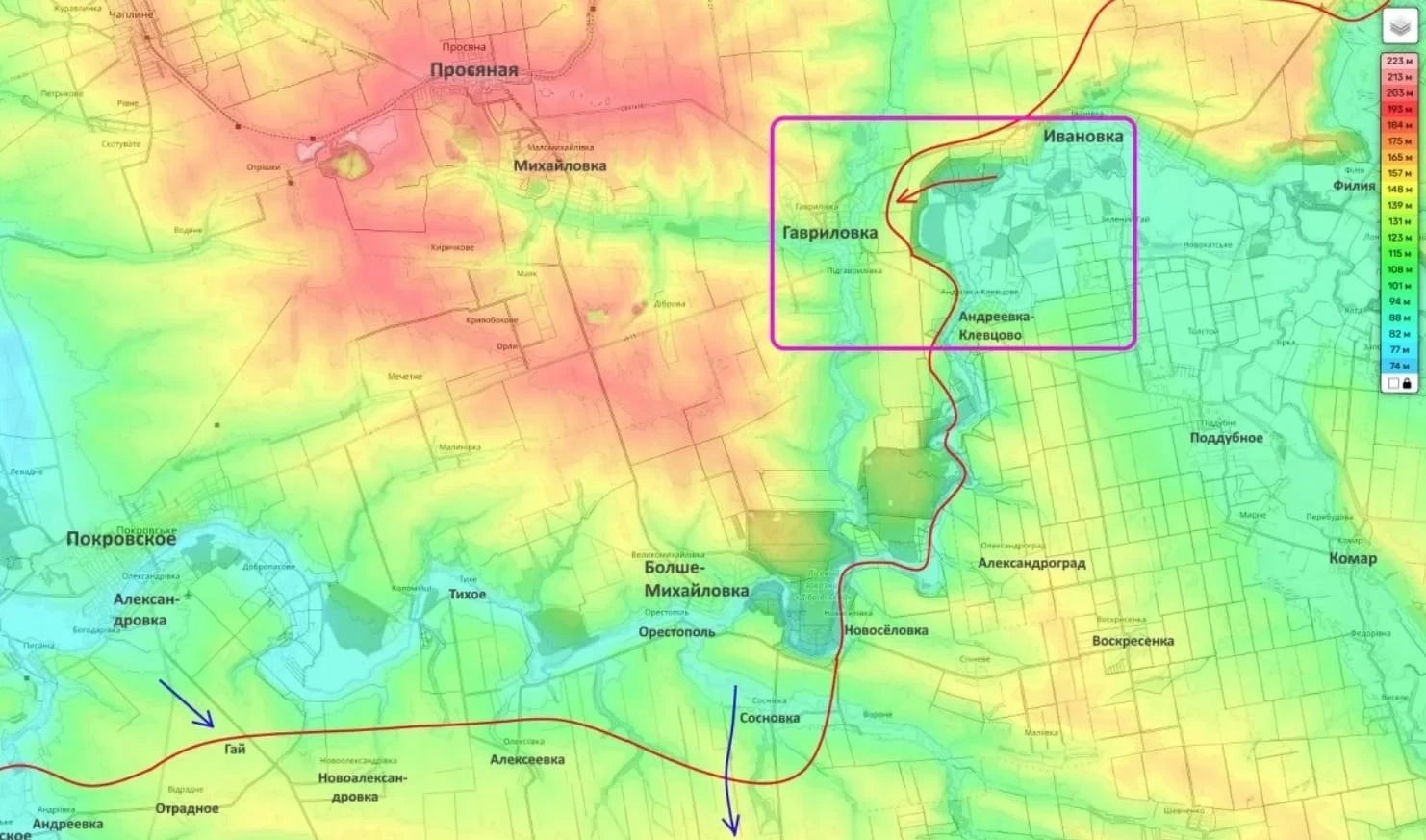 "А сегодня ещё пришла очень хорошая новость о том, что наши подразделения чуть севернее нанесли удар из района Ивановки на Гавриловку и тоже сумели придвинуться до самых окраин этого населённого пункта. На самом деле Гавриловка - это очень важное село, наш контроль над которым создаст очень большие проблемы для противника. Именно здесь сходятся его линии обороны и занятие Гавриловки командованию противника допустить нельзя", - уточнил Подоляка.