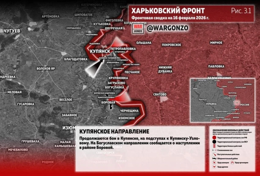 Карта боевых действий на Купянском направлении: свежие данные на 16.02.2026