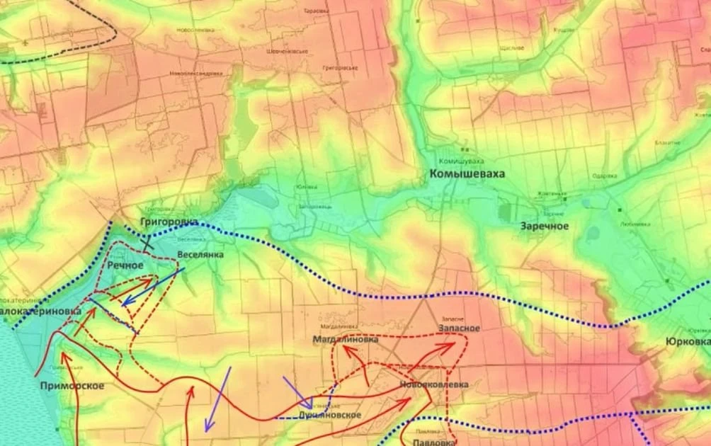 Он подчеркнул, что потеря Магдалиновки и Запасного самым худшим образом скажется на позициях ВСУ на данном рубеже, и им постепенно надо будет оттягиваться за рубеж реки Конки либо на саму реку Конку, в населённые пункты Веселянка, Запорожье, Заречное, где они будут вынуждены держать оборону.