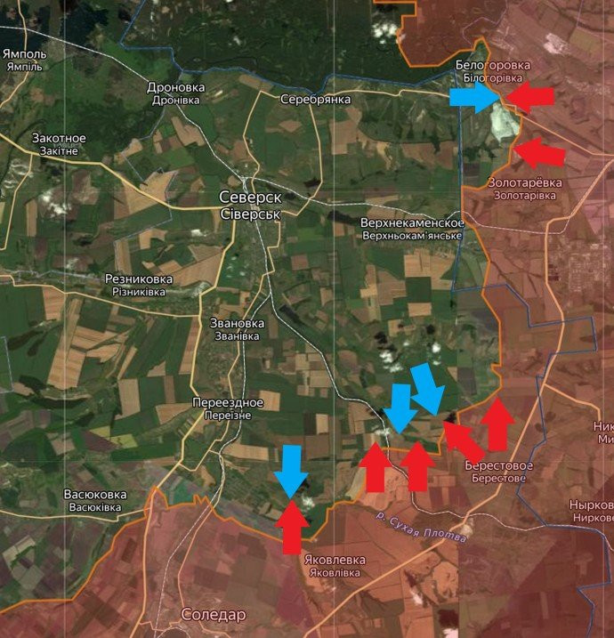 На Артёмовском направлении на Часов Яр ВС РФ осталось продвинуться всего на несколько километров. Активизация боев также отмечается южнее Богдановки после взятия Ивановского.
