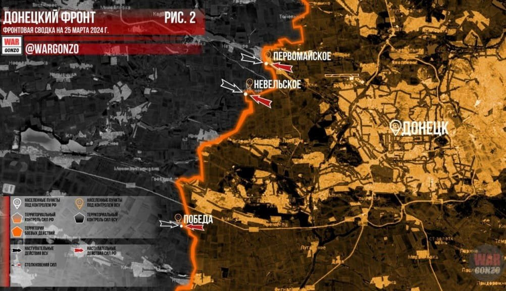 Свежая карта боевых действий на Украине по данным на 12:00 мск от 25.03.2024. Последние новости СВО на сегодня